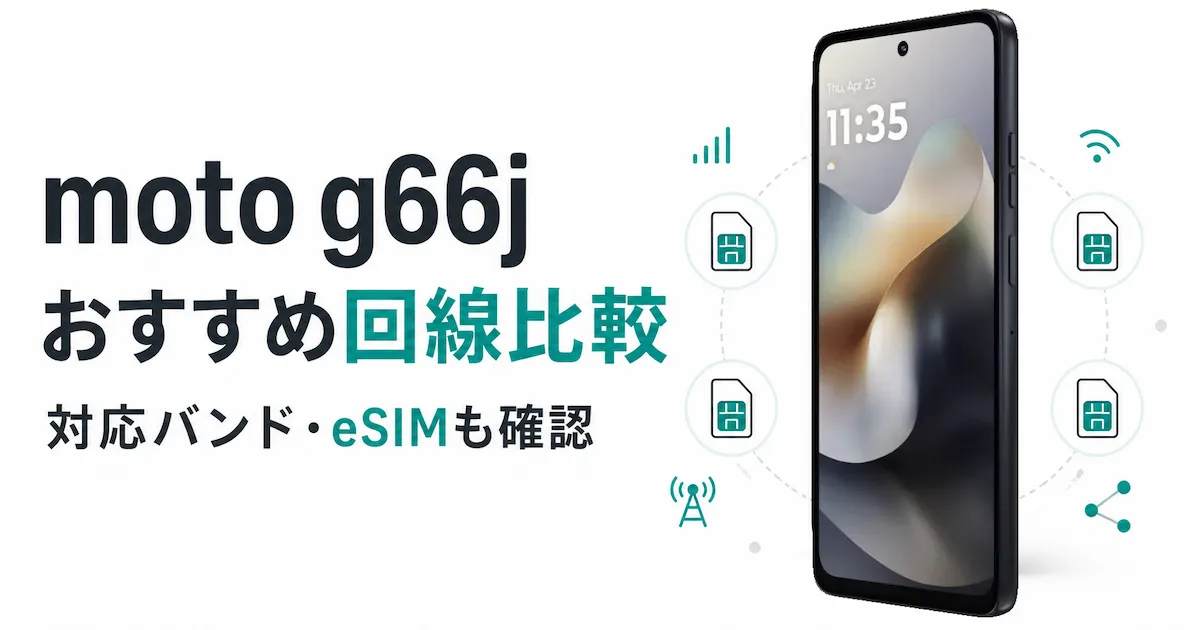 Motorola moto g66j 5G(SIMフリー版)は、防水防塵やおサイフケータイに対応した実用性の高いミドルレンジAndroidです。価格を抑えながら日常使いに必要な機能を揃えた一台ですが、回線選びでは「料金」だけでなく「対応バンド」「5Gエリア」「eSIM対応」「通話の使い方」も確認しておきたいところです。